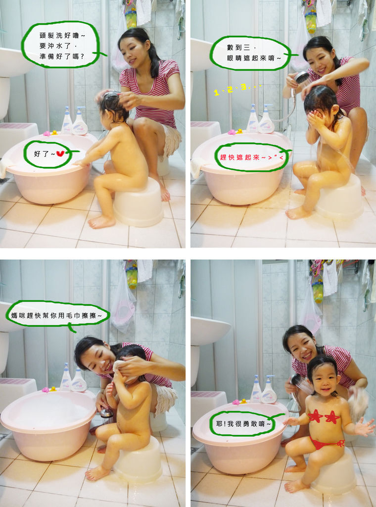 緊張兮兮地確認好每一個步驟都OK了,才敢開始幫小千千洗澡^^”