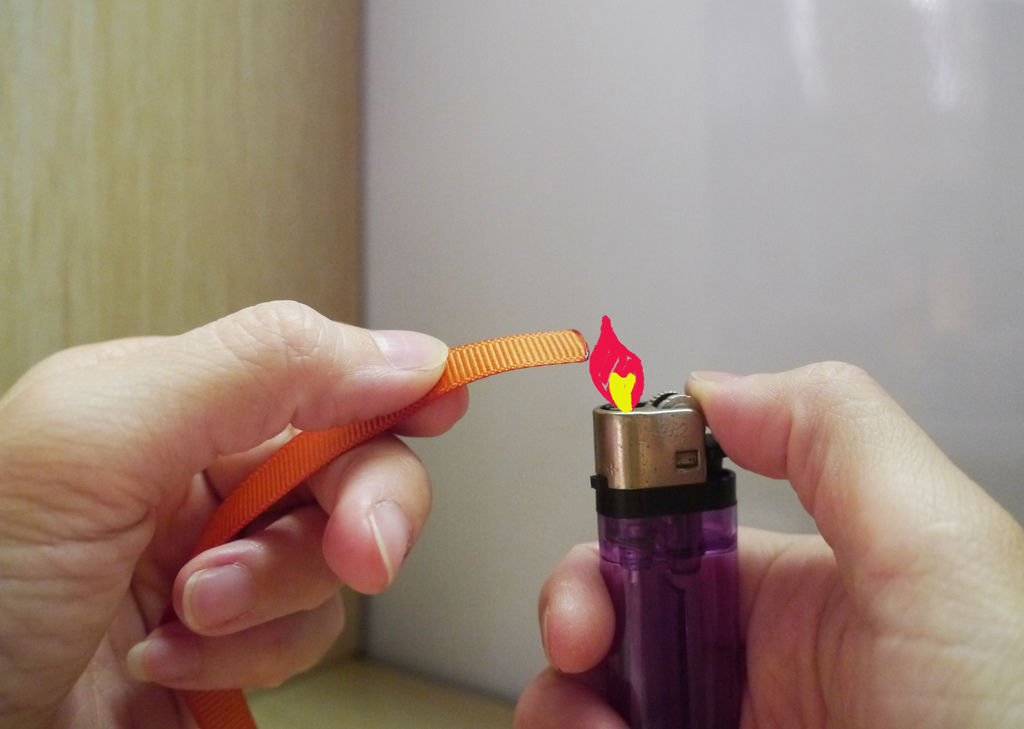 STEP2 用打火機燒一下緞帶的兩端,之後才不會脫線。 (大概三秒就好了)