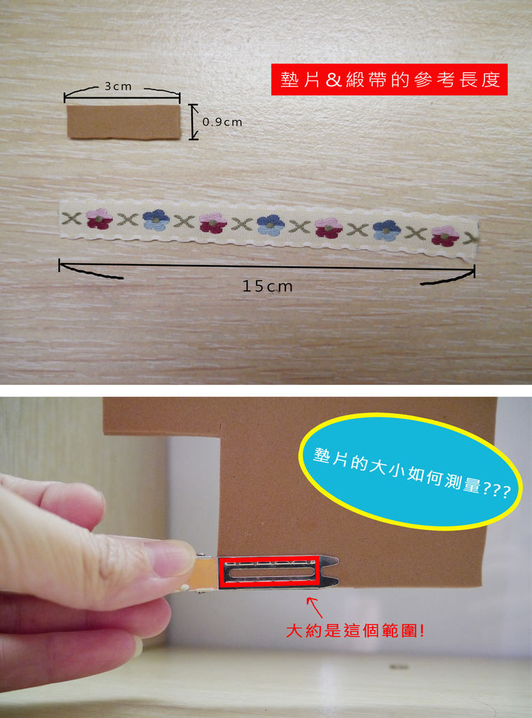 STEP1 先將緞帶和薄泡棉,剪好需要的尺寸。