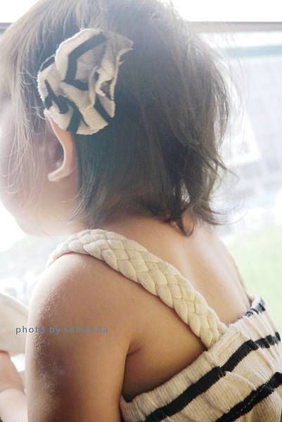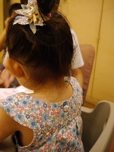 小朋友的頭髮很細、髮量也比較少,所以髮夾很容易就滑下來了~~