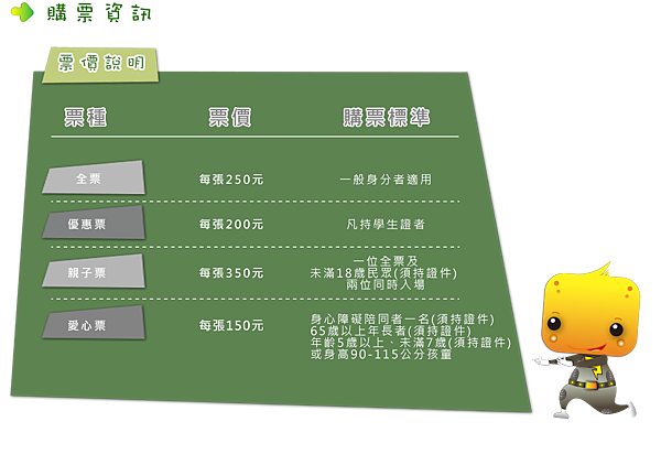 ※5歲以下及身心障礙者免費入場唷~~~(須持相關證明文件)