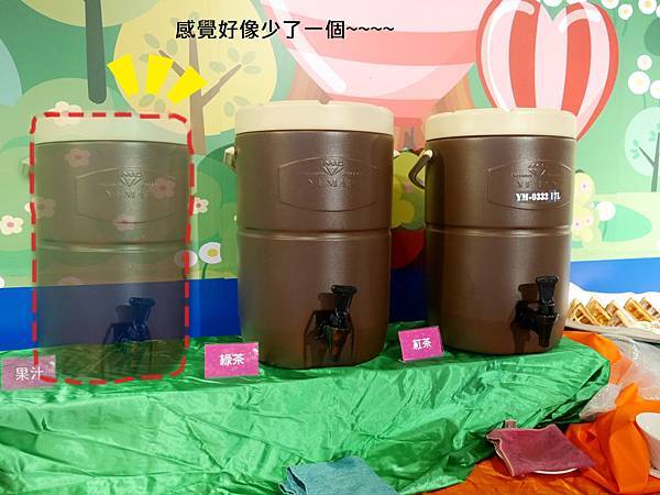 缺了小朋友可以喝的東西,好像有點怪怪的~~~~或許有果汁什麼的會更好唷!!
