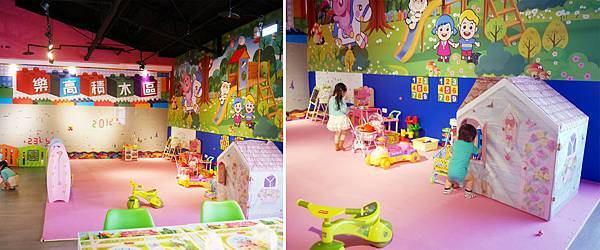 比較多家家酒玩具,還有一大面的樂高牆。