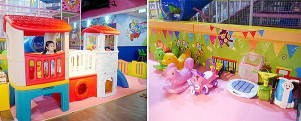 小寶寶也可以爬來爬去的溜滑梯組,另外還有一些搖搖馬之類的騎乘玩具。