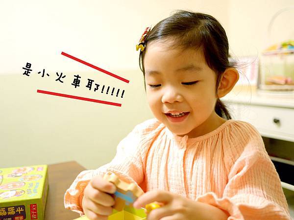 馬上就拿了小火車頭和她最喜歡的勇氣徽章起來玩XD