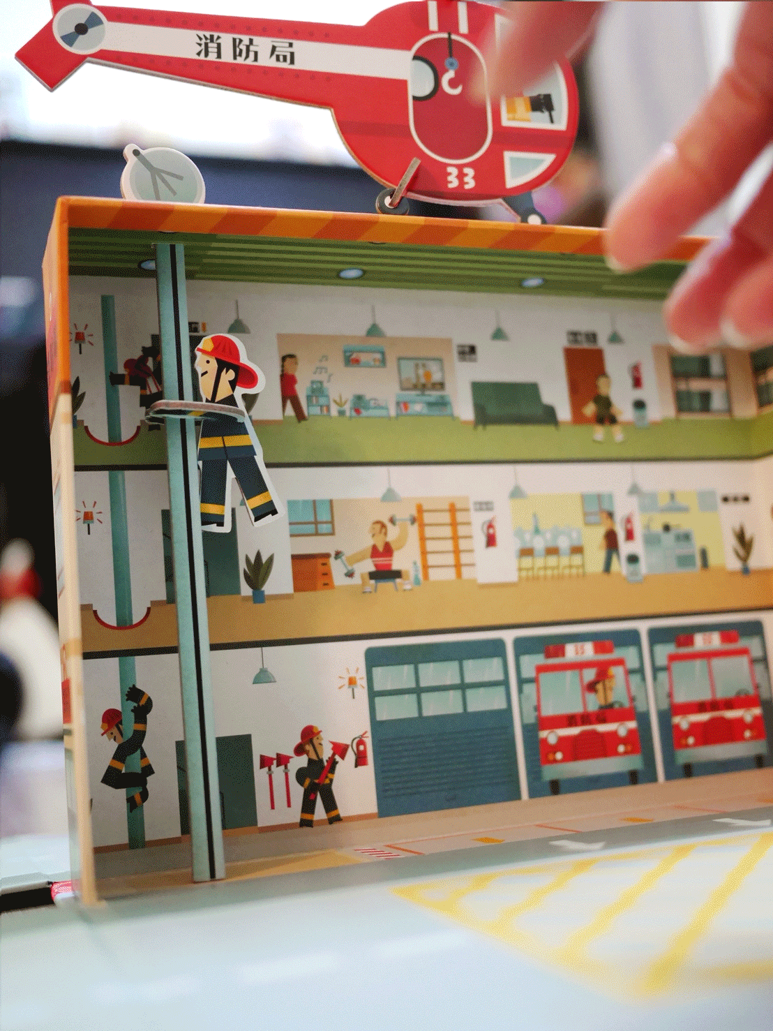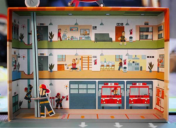 還有一個從滑桿溜下來,準備要值勤的消防隊員唷^___^y