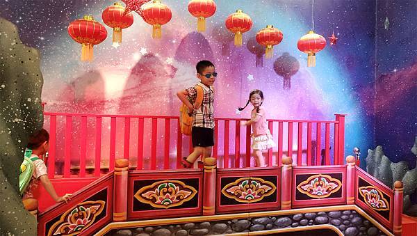 一進門就看到一座橋的佈景,小孩完全不用cue就自己上去了~~
