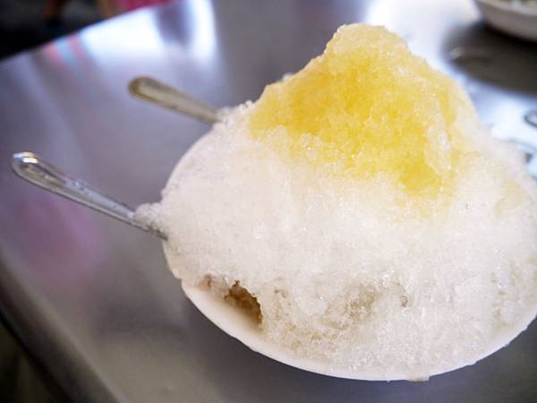 熱熱的綠豆蒜+剉冰料,蓋上一大瓢冰,