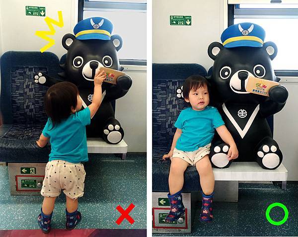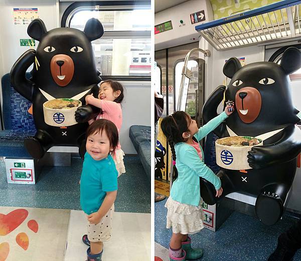 車上總共有四隻不同造型的黑熊和我們坐火車,小朋友當然超愛的!!!!