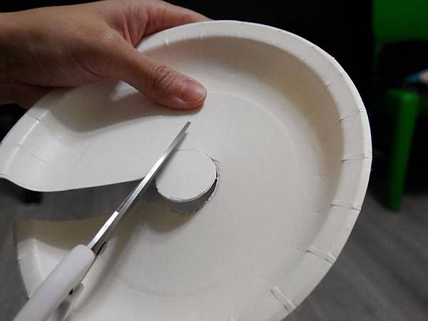 2.剪一條直線,並把剛剛的圓剪下來。(其中一個不要剪,當成底盤)