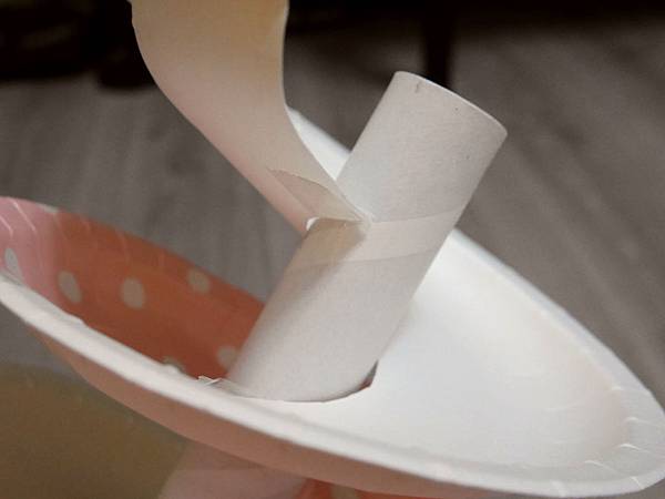 5.把棍子固定在當作基底的盤子,才會比較穩。