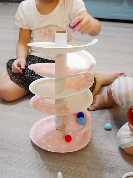 所以後來我們改成用毛毛球(2cm)來玩,就很順利地滾到最下面~