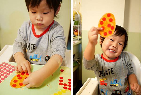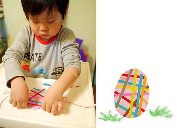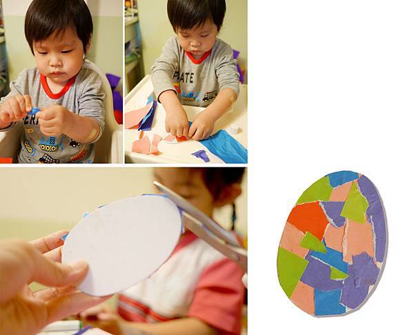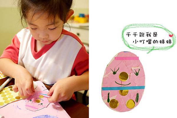 小童版(b)用撕貼畫的方式幫雞蛋上色