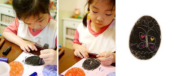 正當我在幫忙萬萬的時候,餘光瞄到千千正用黑色蠟筆把雞蛋塗滿!!!