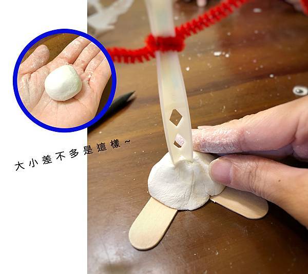 8.將白色黏土黏在冰棒棍上、壓一壓。